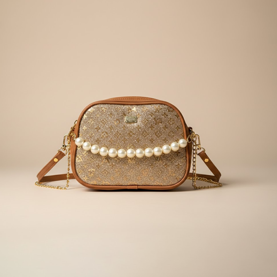 Embrace elegance with this Louis Vuitton handbag featuring a stunning pearl accent. The shimmering gold exterior exudes luxury, while the iconic brand logo adds a touch of prestige. With its sleek design and adjustable strap, this bag seamlessly blends style and practicality, making it a perfect addition to your collection.